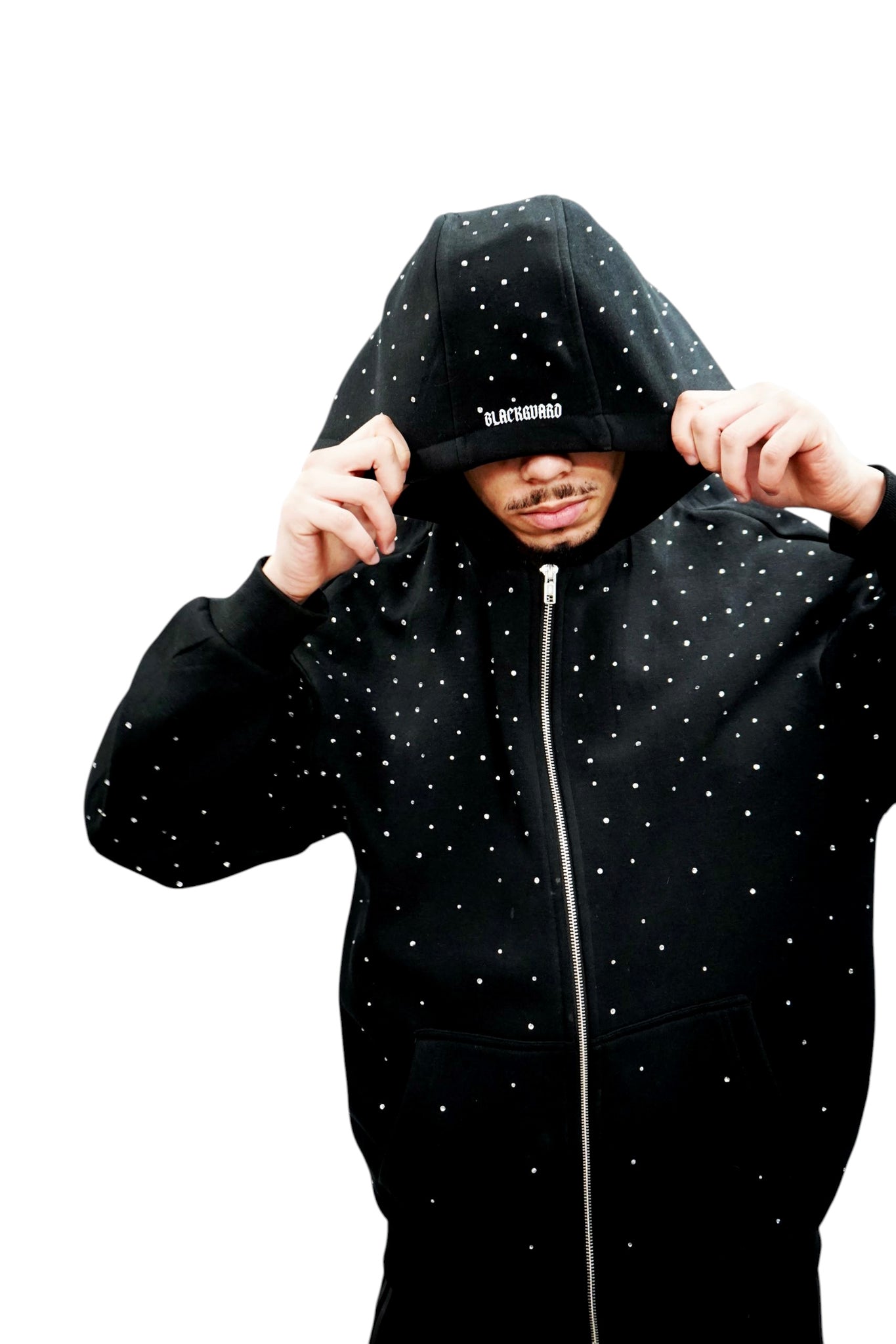 Discover the ultimate blend of comfort and style with the zip hoodie. Designed for both warmth and ease, this hoodie features a plush texture that feels soft to the touch. Custom rhinestones have been pressed onto the hoodie to implement a stand out design. Its convenient zip-up design offers effortless wear, making it an ideal choice for layering or stand-alone use. The zip hoodie embodies casual sophistication, presenting a versatile addition to any wardrobe without compromising on cosiness or practicality.